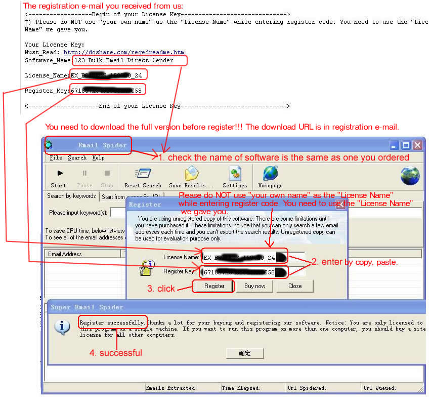 A: Please double check if the name of software you are trying to register is the same as one you ordered.